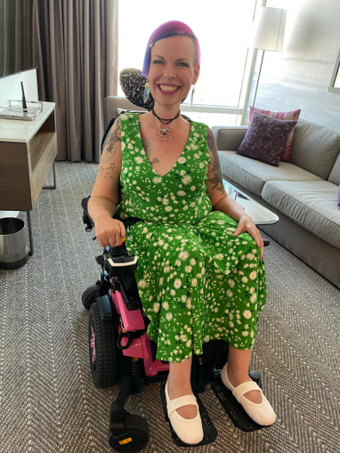 HI! I AM ALLIE. I AM A 41 YEAR OLD LIVING WITH SPINAL MUSCULAR ATROPHY TYPE 2. IN SEPTEMBER, 2020, I BEGAN TAKING THE THIRD FDA APPROVED TREATMENT FOR SMA, EVRYSDI. I HAVE SEEN SIGNIFICANT GAINS ON THIS DAILY MEDICATION AND I PLAN TO JOURNAL ABOUT IT ON THIS SITE. I ALSO HAVE DEDICATED MY TIME TO ADVOCATING FOR DISABILITY AND REPRESENTING THE DISABLED COMMUNITY AS HONESTLY AND OFTEN AS POSSIBLE ON TIKTOK, INSTAGRAM AND YOUTUBE. I WRITE FOR SPINALMUSCULARATROPHY.NET AND ALSO TEACH PRIVATE VOCAL LESSONS ON ZOOM.